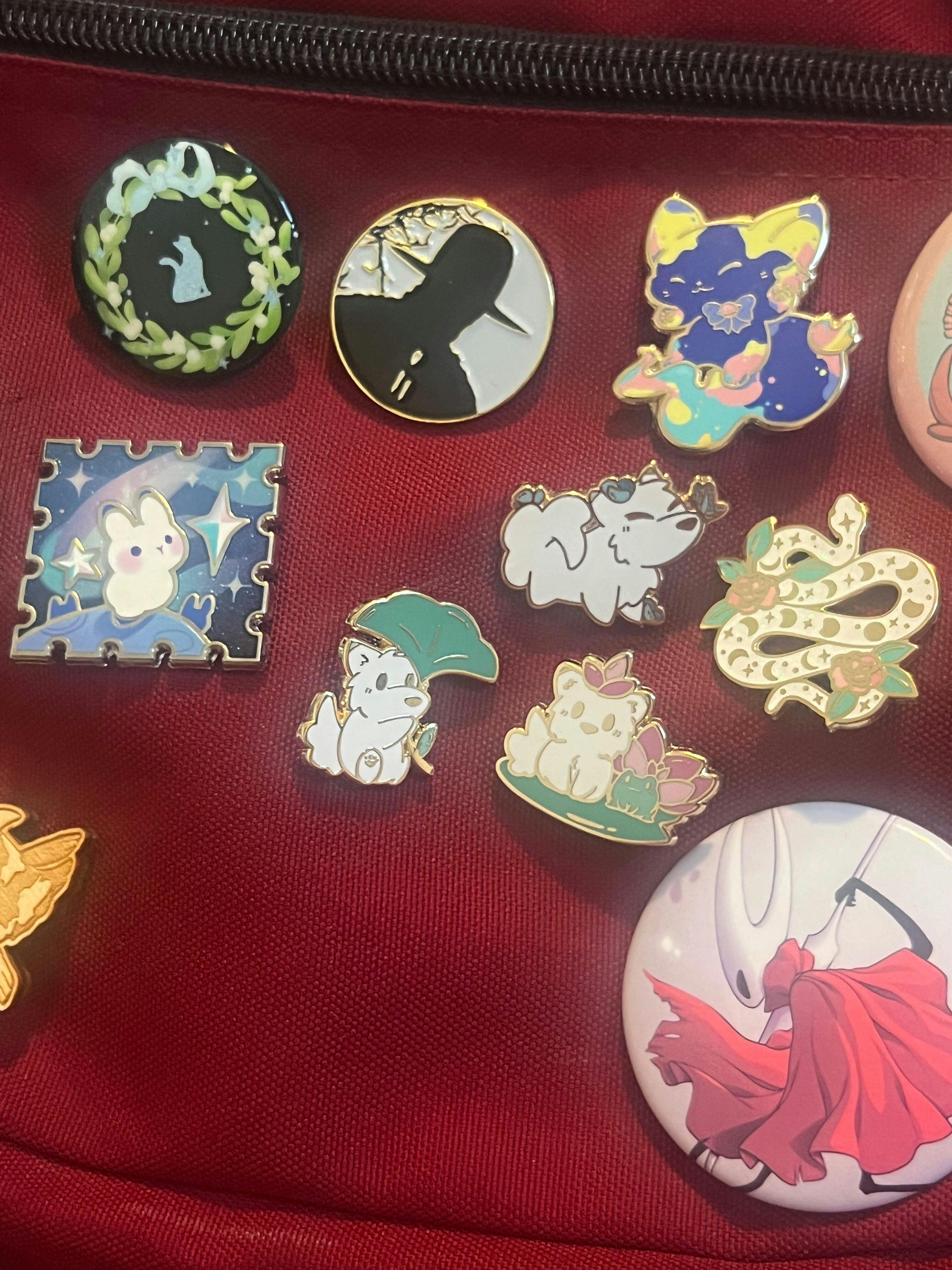 Hard enamel pins, includes 3 pins (pins not sold separately). Pins range in size from .75" to 1.25". Backing card is 2.5" x 2.5" for reference.
